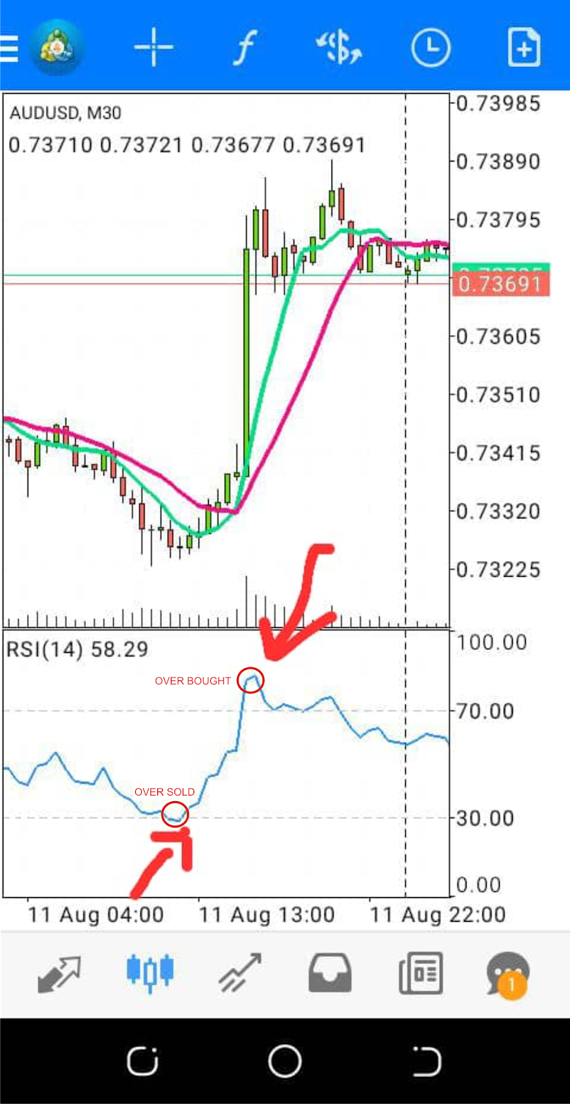 When the chart is experiencing a bearish trend and it enters oversold that is the best time for you to buy because it is likely that the next trend the chart will experience after that is the bullish trend. Also when the market is experiencing a bullish trend and it enters an overbought region then you sell because the next trend after that will be bearish. Example below